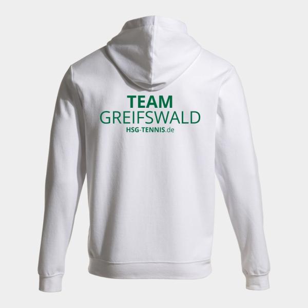 - Rückseite: Optionaler Schriftzug „TEAM GREIFSWALD“ in Grün, ergänzt durch HSG-TENNIS.de in kleinerer Schrift.