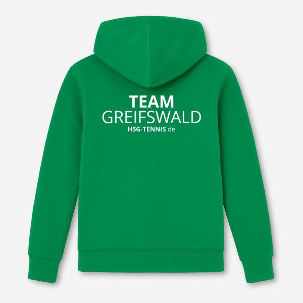 - Rückseite: Optionaler Schriftzug „TEAM GREIFSWALD“ in Weiß, ergänzt durch HSG-TENNIS.de in kleinerer Schrift.