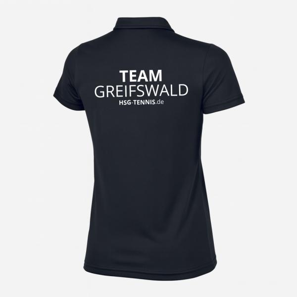 - Rückseite: Optionaler Schriftzug „TEAM GREIFSWALD“ in Weiß, ergänzt durch HSG-TENNIS.de in kleinerer Schrift.